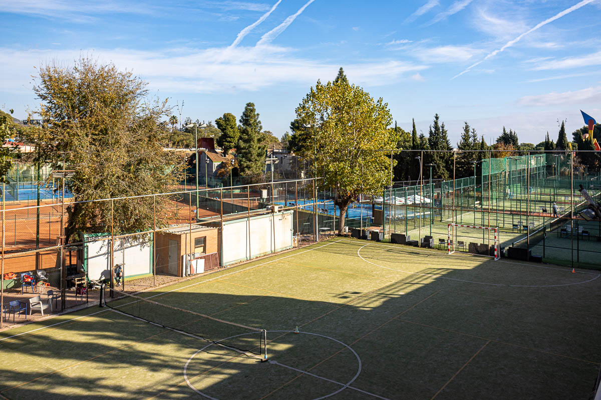 El camp de futbol de gespa artificial del Club Esportiu Hispano Francès ofereix un espai ideal per gaudir del futbol en qualsevol moment del dia, amb instal·lacions de qualitat que permeten jugar tant amb llum natural com amb il·luminació artificial quan es fa fosc.